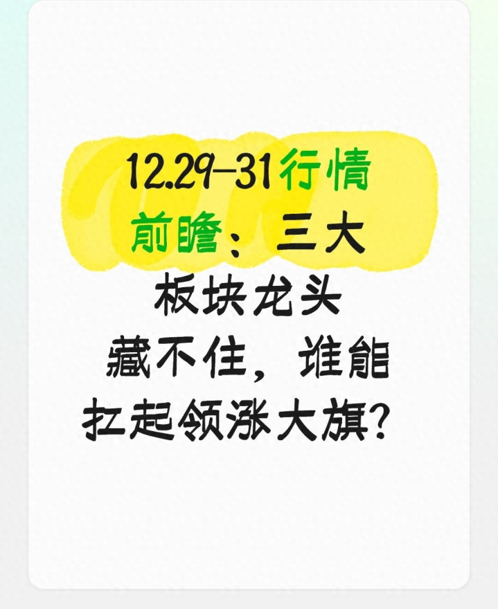 配资炒股论坛 12.29-31行情前瞻: 三大板块龙头藏不住, 谁能扛起领涨大旗?